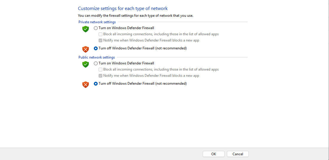 2. พิมพ์ Window Defender Firewall ในช่อง Search (ค้นหา) ของวินโดว์ เลือก Turn Window Defender Firewall on or off
