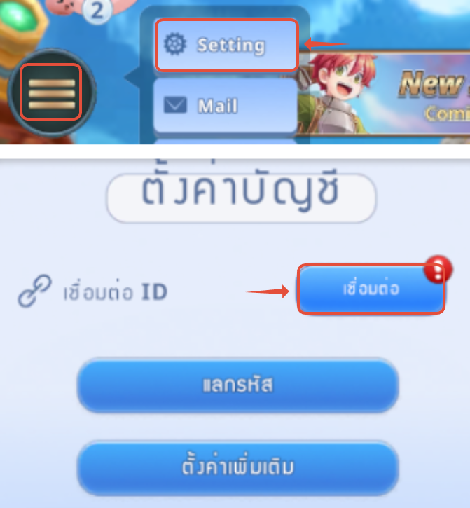 : ไปยังเมนู Menu icon (≡) → Setting (ตั้งค่า) → ตั้วค่าบัญชี → เชื่อมต่อ