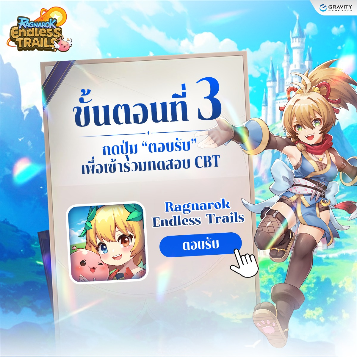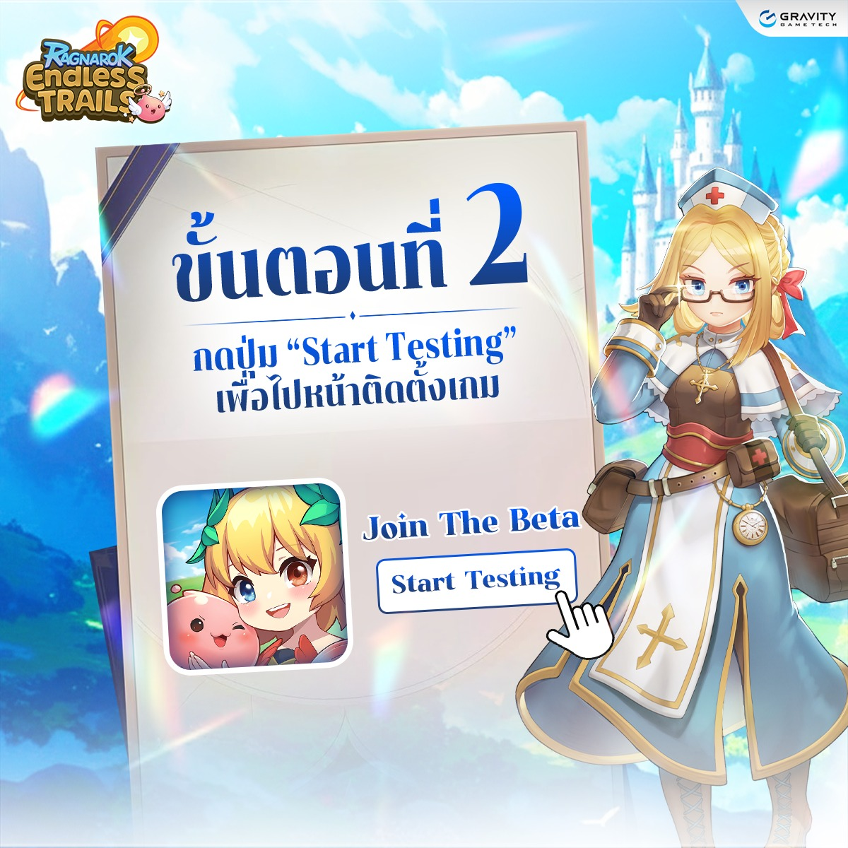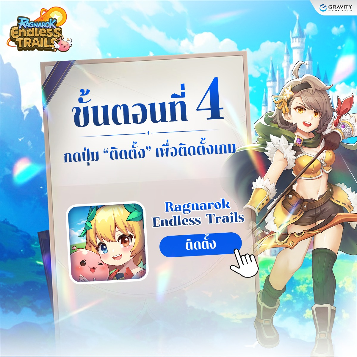 เมื่อติดตั้งสำเร็จแล้ว สามารถเข้าเกมและร่วมทดสอบ Ragnarok Endless Trails ได้ทันทีค่ะ