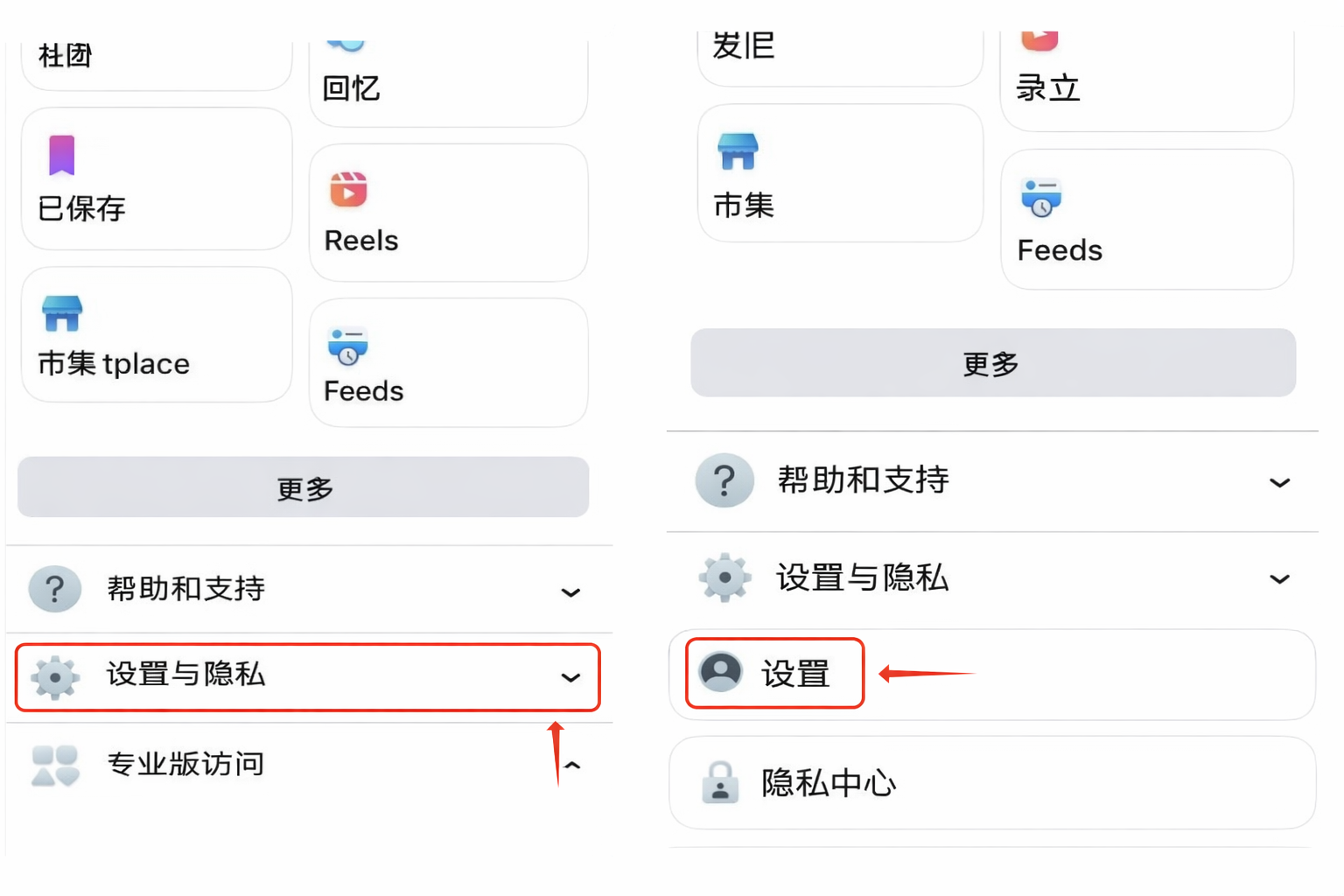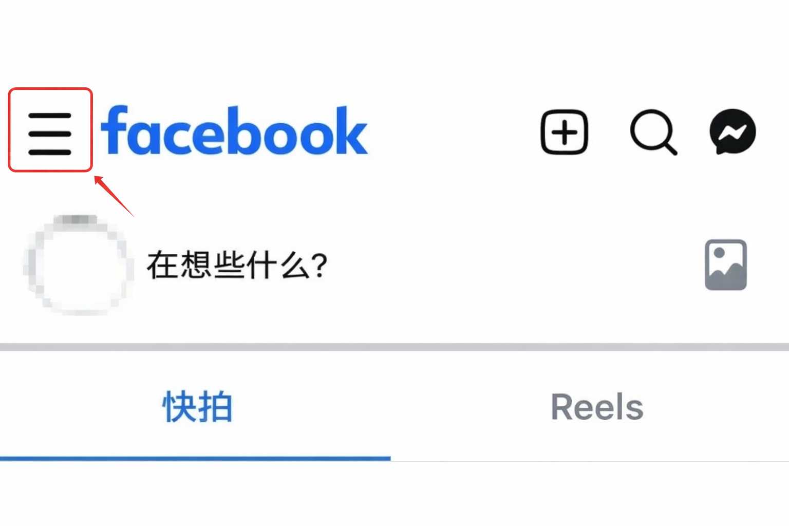 1. 打开 Facebook,点击左上角的 “更多” 按钮,该按钮以三条横线(☰)图标显示,如下图所示。